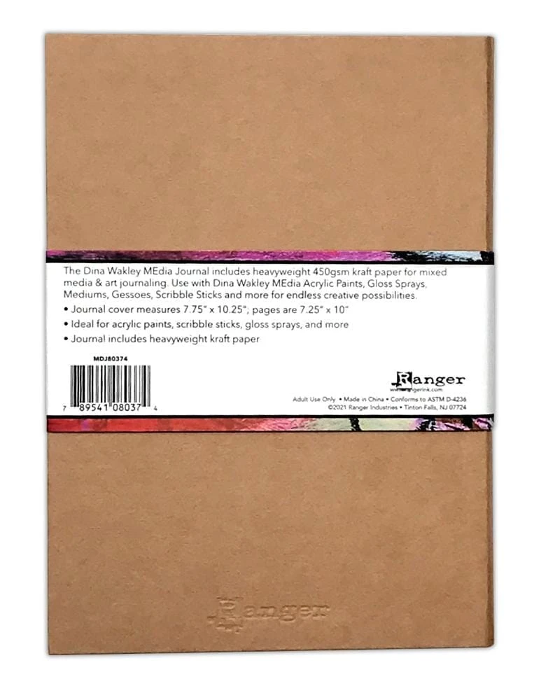 The Dina Wakley MEdia Kraft Journal includes heavyweight 450gsm kraft paper for mixed media & art journaling. Use with Dina Wakley MEdia Acrylic Paints, Gloss Sprays, Mediums, Gessoes, Scribble Sticks, and more for endless creative possibilities. Journal cover measures 7.75 x 10.25″ and pages measure 7.25 x 10. Contains 60 pages.
