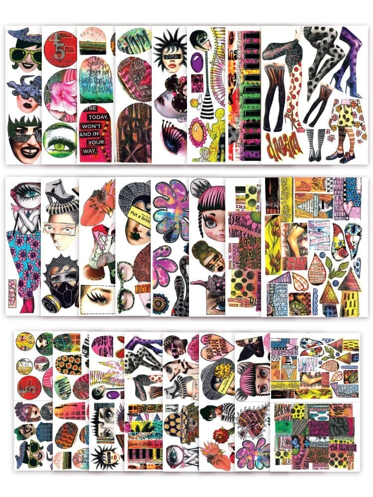 Create fabulous art journals and mixed media projects with these high quality Dylusions collage images. Collage sheets consist of fun and eclectic artwork taken from Dyan’s original art journals. Use in combination with Dylusions paints, inks, stamps, stencils, and other products to create your own, one of a kind, collage pages. Available in four sets, each contains 24 (8.5×11) image sheets on high quality white paper, 16 pages of full size images and 8 pages of half size images.