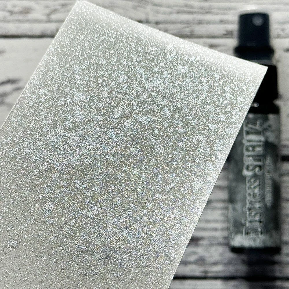 Tim Holtz Distress® Spritz is a luminous spray that coordinates with the Distress color palette to add colorful shimmer to your favorite Distress products. Distress Spritz are formulated blends of pearlized pigments in a clear fluid base to use on porous surfaces like paper, canvas, wood and more. Use with Distress Ink, Oxide, Spray Stain, Oxide Spray, Paint, Pencils and Pastes to create colorful, luminous effects and backgrounds. Available in 1 fl oz bottle (29ml)